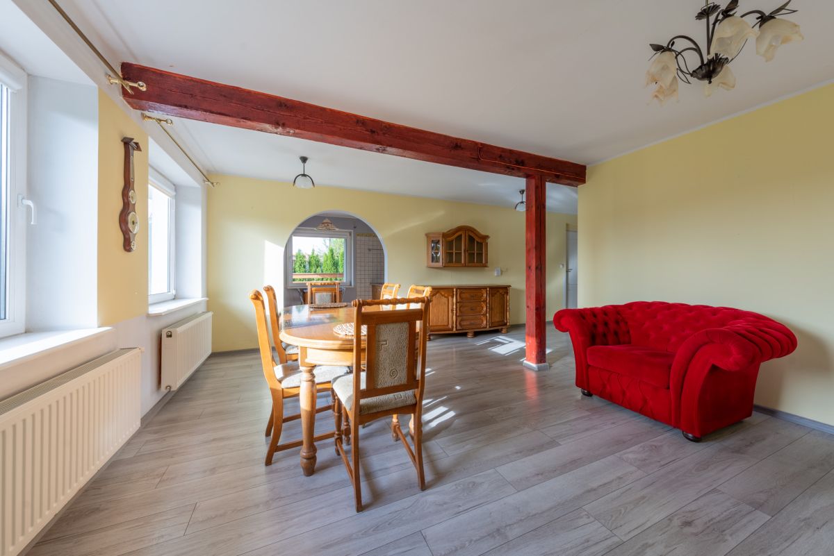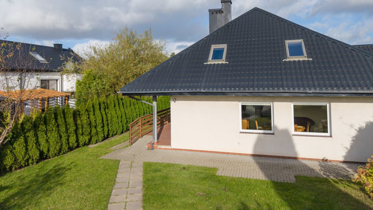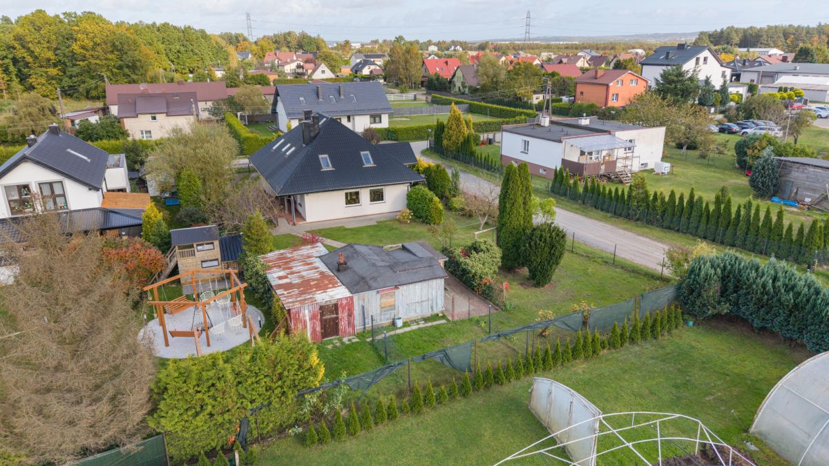 Na sprzedaż dom parterowy typu Bungalow o powierzchni użytkowej 174m2 zlokalizowany na działce o powierzchni 964m2 w Kębłowie przy ulicy Siewnej.