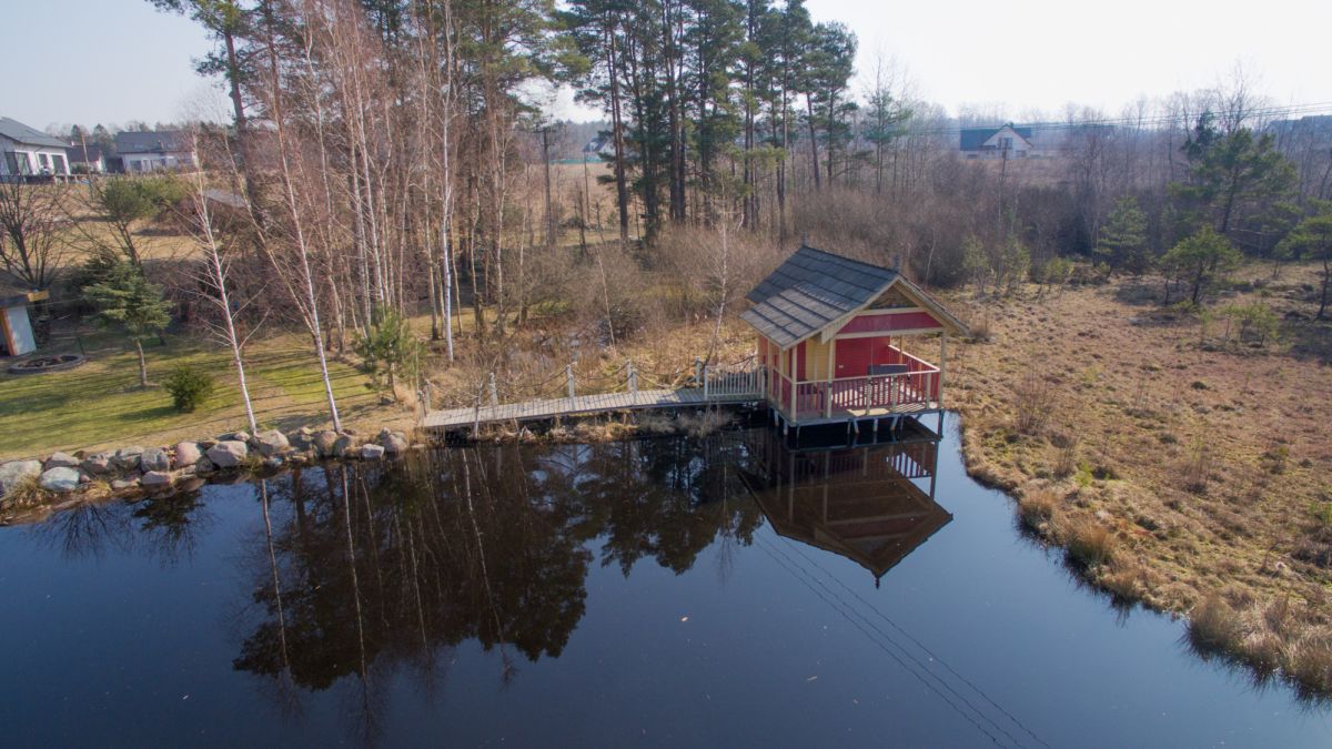 Cicha okolica przy utwardzonej drodze bez kurzu, blisko lasu i jeziora .