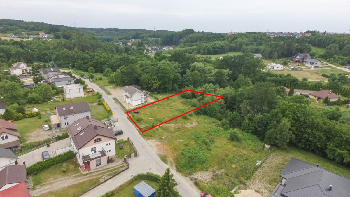 Teren mieszkaniowy - 981m2, powierzchnia lasu 607m2.