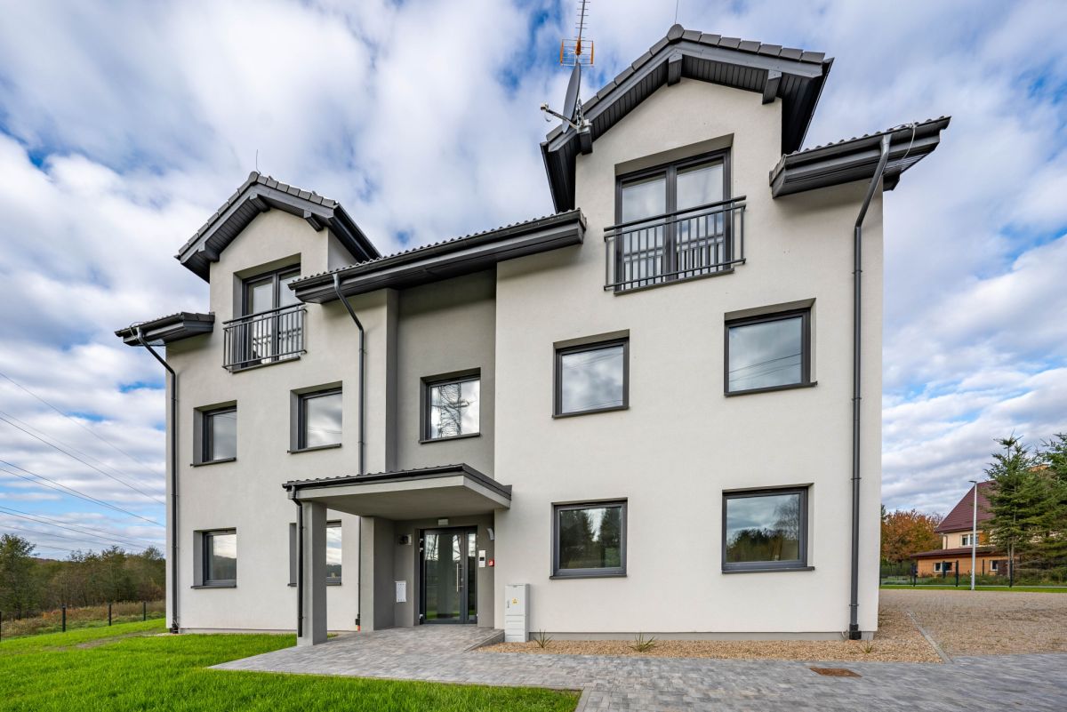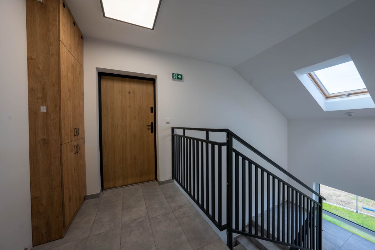 Budynek 2 piętrowy z elegancką klatką schodową. Nowe budownictwo, wysoki standard wykończenia. Domofon. Monitoring.