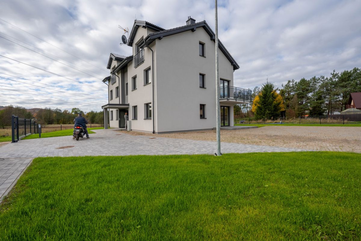 Budynek 2 piętrowy z elegancką klatką schodową. Nowe budownictwo, wysoki standard wykończenia. Domofon. Monitoring.