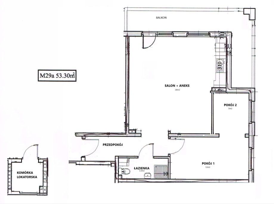 Mieszkanie jest częściowo umeblowane- w aneksie kuchennym zamontowane są meble oraz podstawowe wyposażenie. Resztę przestrzeni można zaaranżować według własnych potrzeb. Do mieszkania przynależna jest komórka lokatorska oraz miejsce parkingowe.